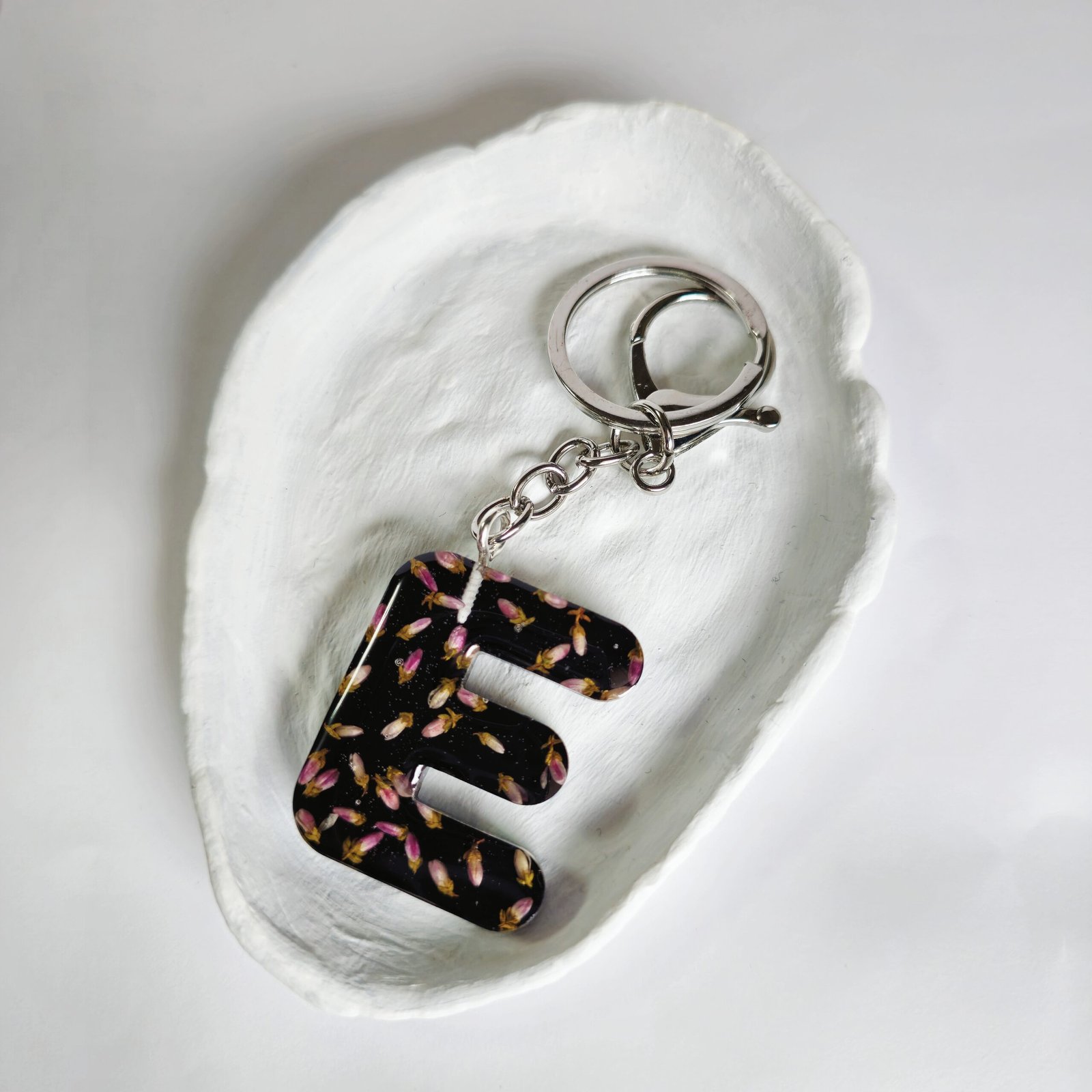 Brelok w kształcie litery „E”.